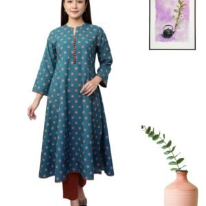 Angrakha Style Loose Fit Long Printed Khaddar Kurta With Matching Trouser -Stitched 2PC
