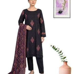 Black Dress With Designer Dupatta (Shawl)-Stitched 3PC
