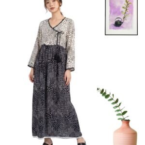 Monochrome Elegance: Angrakha Style Full Length Frock-Stitched 1PC